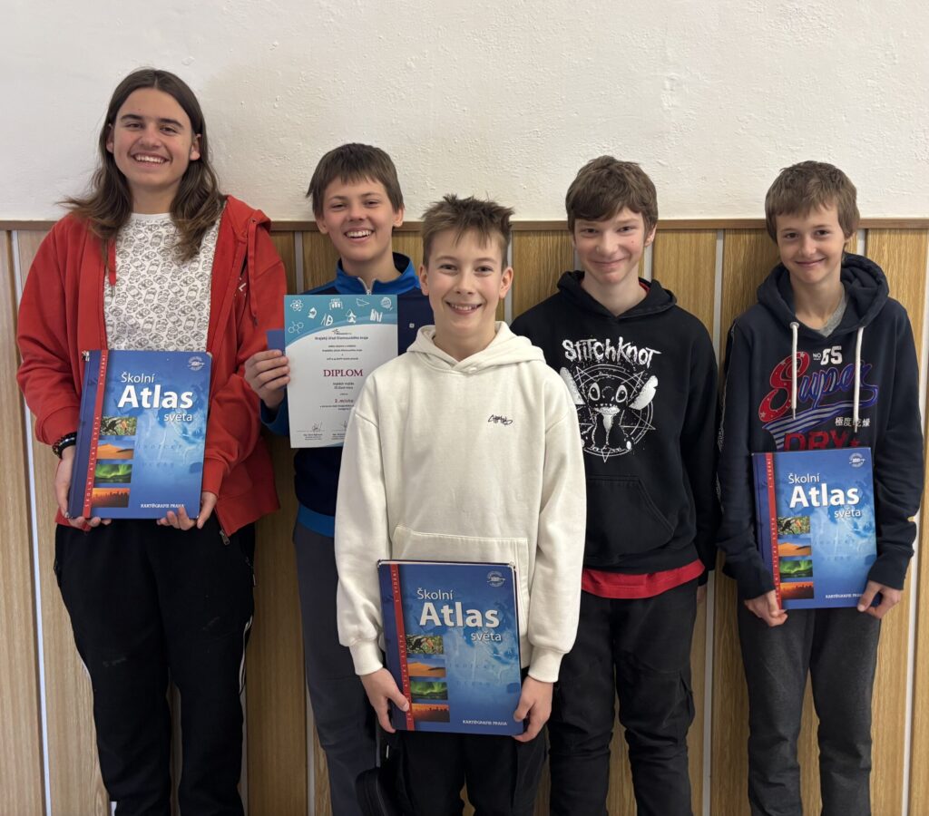 Někdo měřil své síly v Cortině a v Milánu, my jsme jeli ve středu 18. 2. 2026 bojovat do Mikulovic na okresní kolo Geografické olympiády. Složení našeho týmu bylo – Ondra Vojčák /6. A/, Vojta Holčík /6. B/, Michal Růžička /7. B/, Vojta Vojčák /8./, Stavros Niku /9./. Chlapci si museli poradit se třemi testy – práce s atlasem, test znalostí a praktická část.