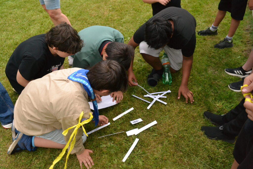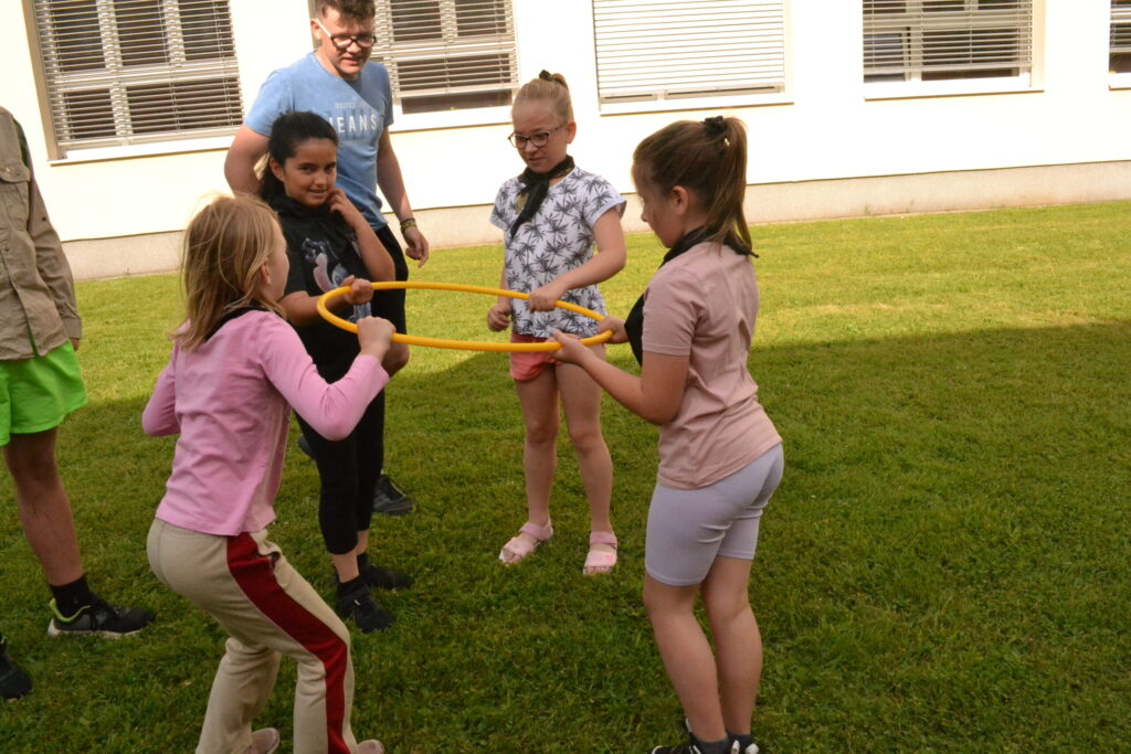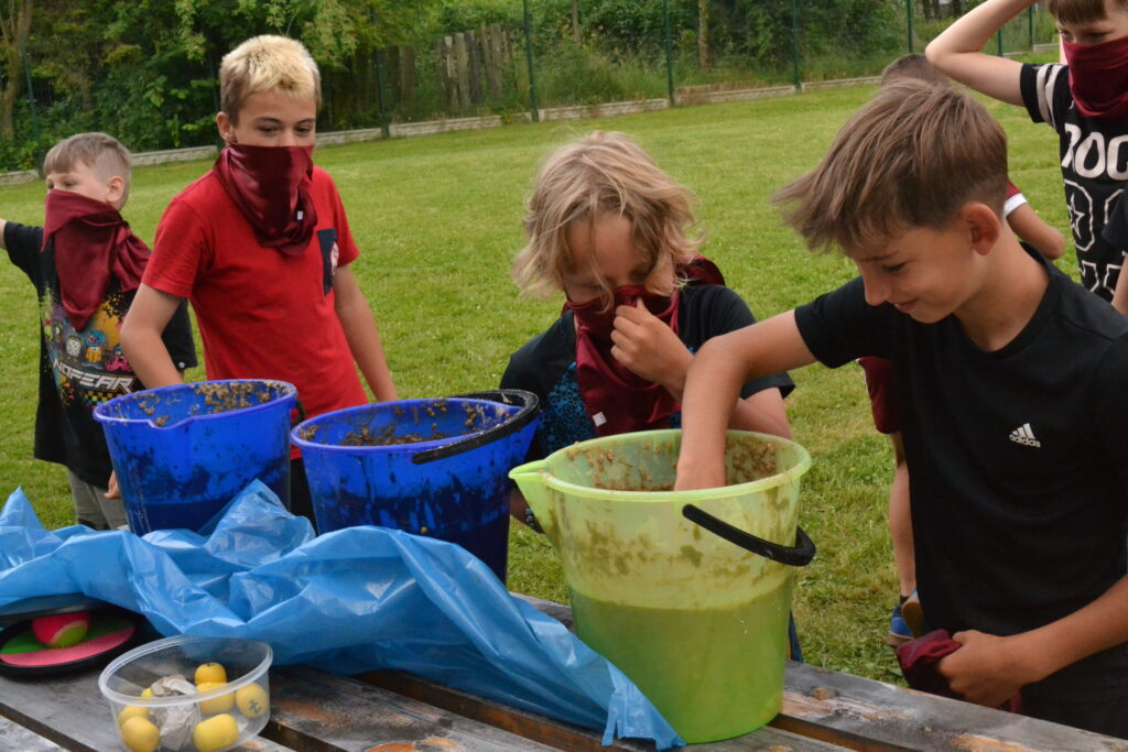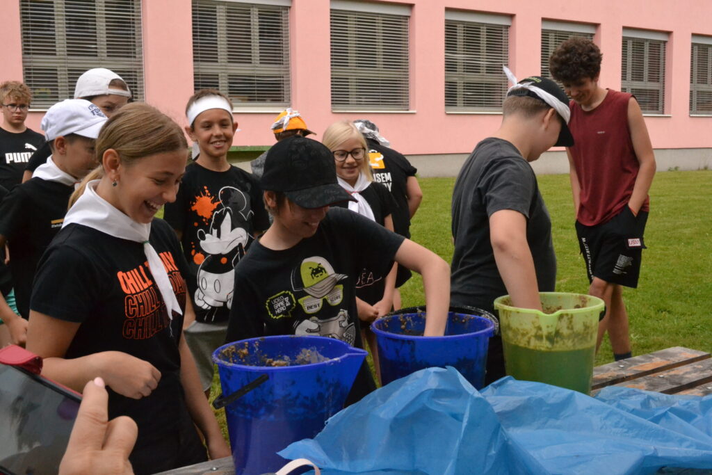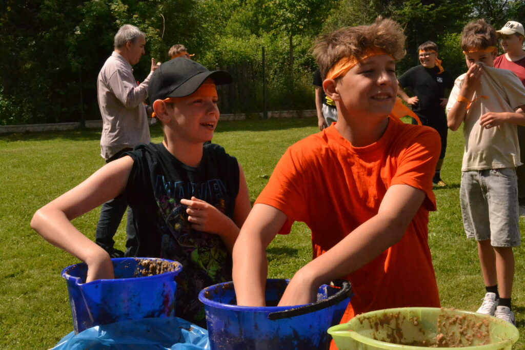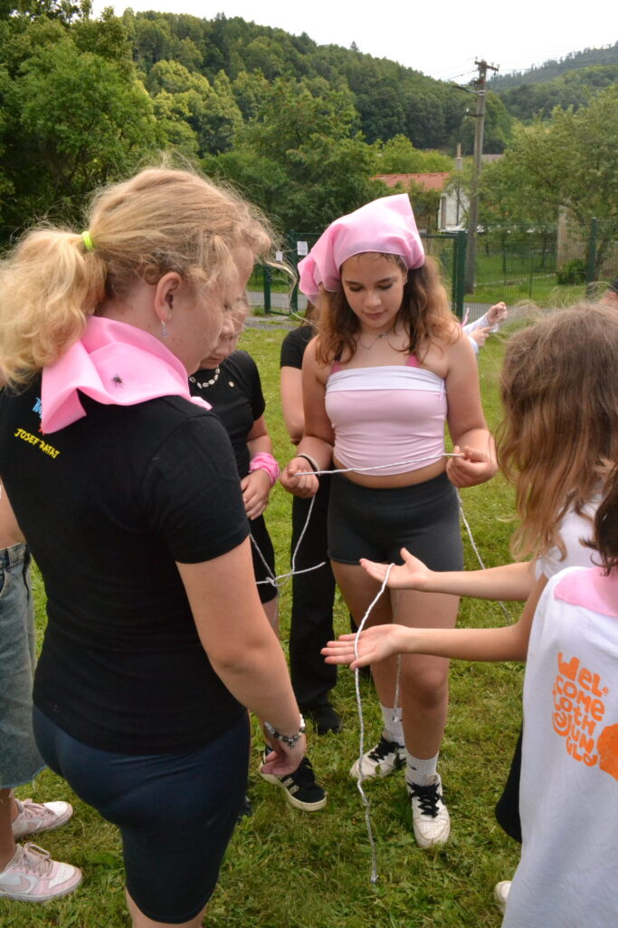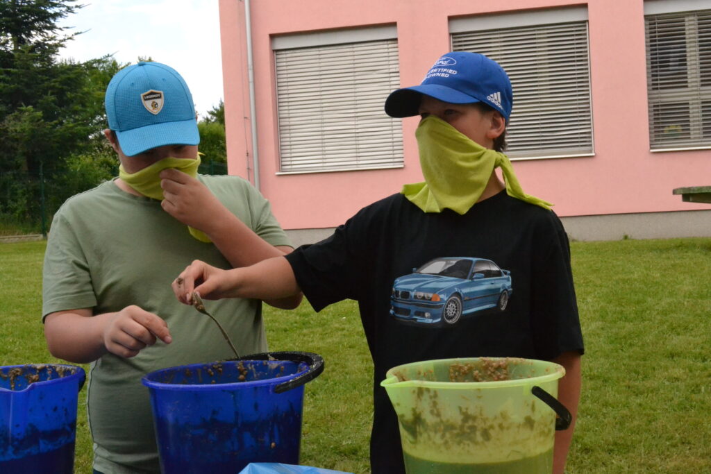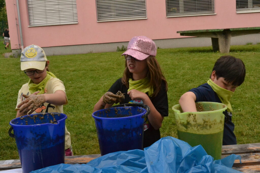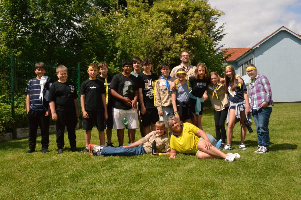 Za krásného letního počasí se po roce na školním hřišti zase sešli všichni z naší školy. Návod, jak přežít prázdniny, nám dali zlatohorští skauti z řad našich starších žáků. Na šesti stanovištích si děti mohly vyzkoušet znalosti a dovednosti ze zdravovědy, uzlování, spolupráci v týmu, šifrování a také se pokusili překonat sami sebe a sáhnout si na dno. A to doslova – na dno kbelíku s nevábným (ale bezpečným) obsahem. Všichni našli “zlaté vejce”, ve kterém se skrývala indicie, což byl název některé z nášivek, kterou pak u obří skautské košile našli a přilepili. Moc děkujeme všem deváťákům a dalším několika pomocníkům z nižších ročníků. Na stanovištích si vedli skvěle, s ostatními malými i velkými spolužáky mluvili jako profesionálové a vysloužili si respekt všech. Celé dopoledne jim muselo dát pořádně zabrat, ale vůbec to na nich nebylo vidět. Ještě jednou velké díky, budete nám moc chybět 🙂