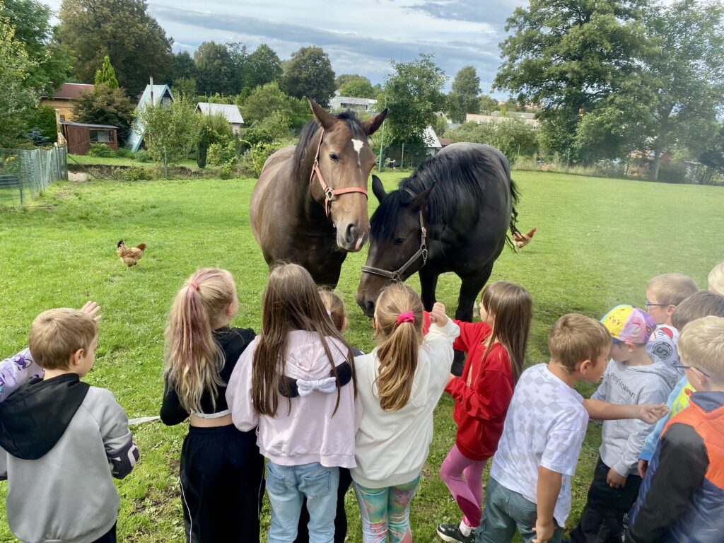 V úterý si družina vyšla na statek k Horákům na Podlesí. Viděli jsme hospodářská zvířata a hlavně jsme se hýbali na čerstvém vzduchu!