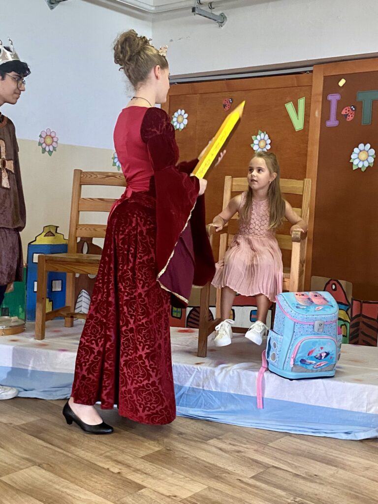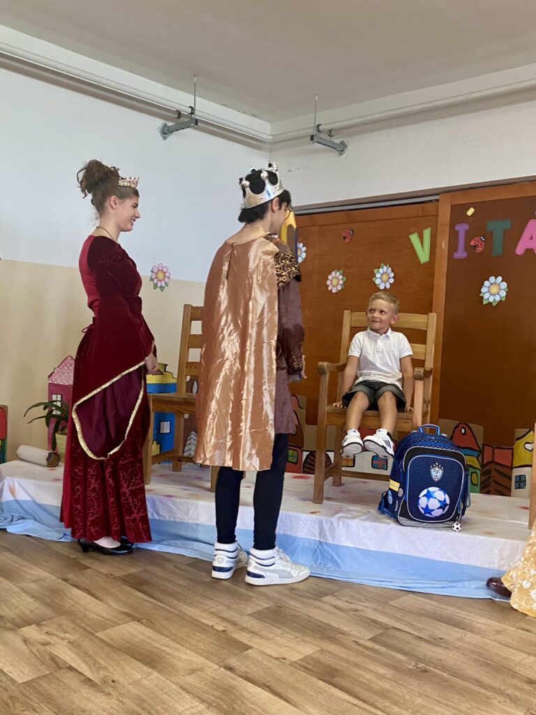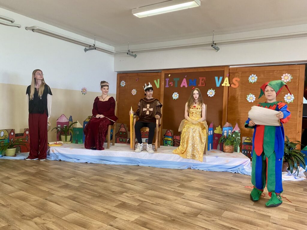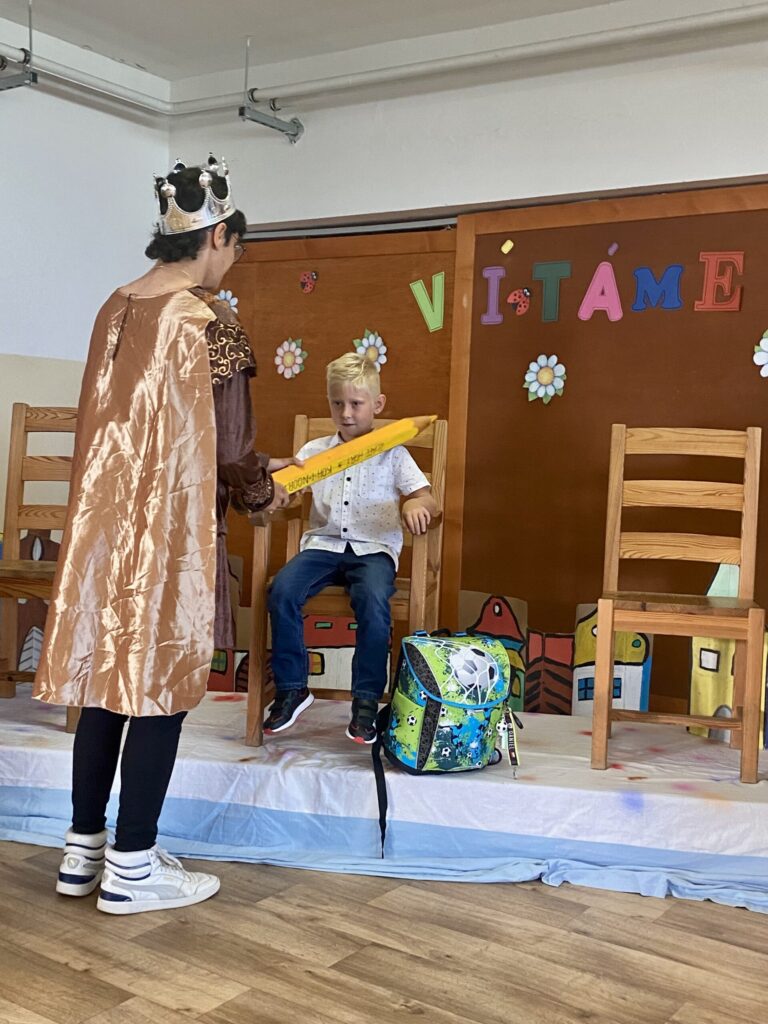 Včera proběhlo 1. zvonění na naší škole. Král Školastikus 9. se svou rodinou pasoval nové děti na žáky 1.třídy a za doprovodu královské družiny se vydali poprvé prozkoumat svou třídu, kde jim žáci 9. třídy pořádně zazvonili. Přejeme žákům spoustu školních úspěchů a hlavně, aby do školy chodili rádi!